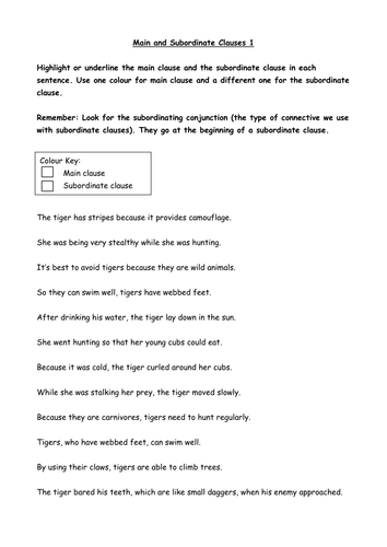 KS2 Grammar: Main and Subordinate Clauses with answers ...