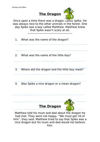 Dragon Comprehension Year 2 Key Stage 1 | Teaching Resources (Wesley Larson) In this series, readers are tested on their ability to perform interpretations, make deductions, and infer the meaning of vocabulary words based on an informational passage. John was good with tools and soon became an inventor. Improve your students' reading comprehension with ReadWorks.