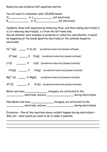 Balancing Redox Reactions Worksheets 1 & 2 (With Answers ... (Stella Murray) If yes, then balance the reaction using the half- reaction method. You can & download or print using the browser document. Refer to the original worksheet for clarification on how to balance REDOX reactions.
